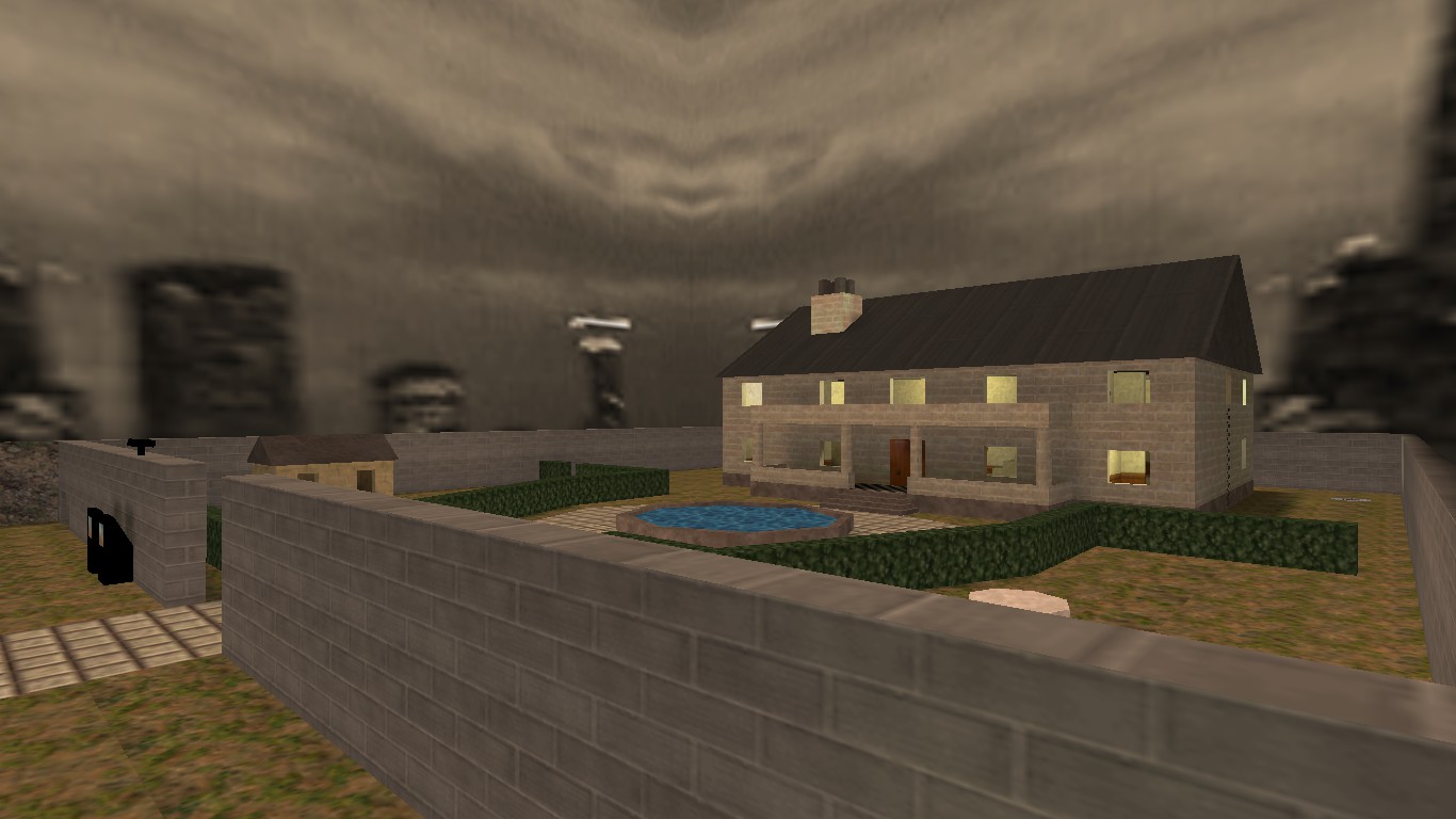 Even the skybox contributes to the feel. It borrows a texture from an unused Half-Life sky asset, creating a deliberately strange, whimsical atmosphere overhead.